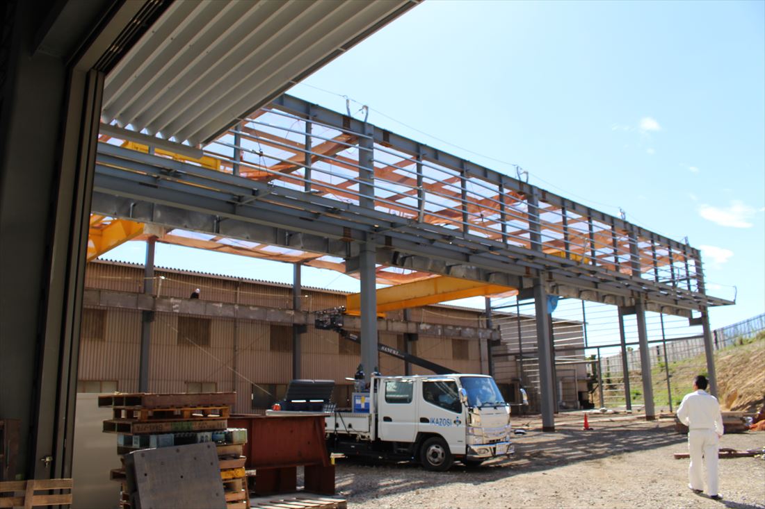 有限会社磯崎の仕事は図面引きから始まり、鉄骨加工、鉄骨組立と進んでいきます。
